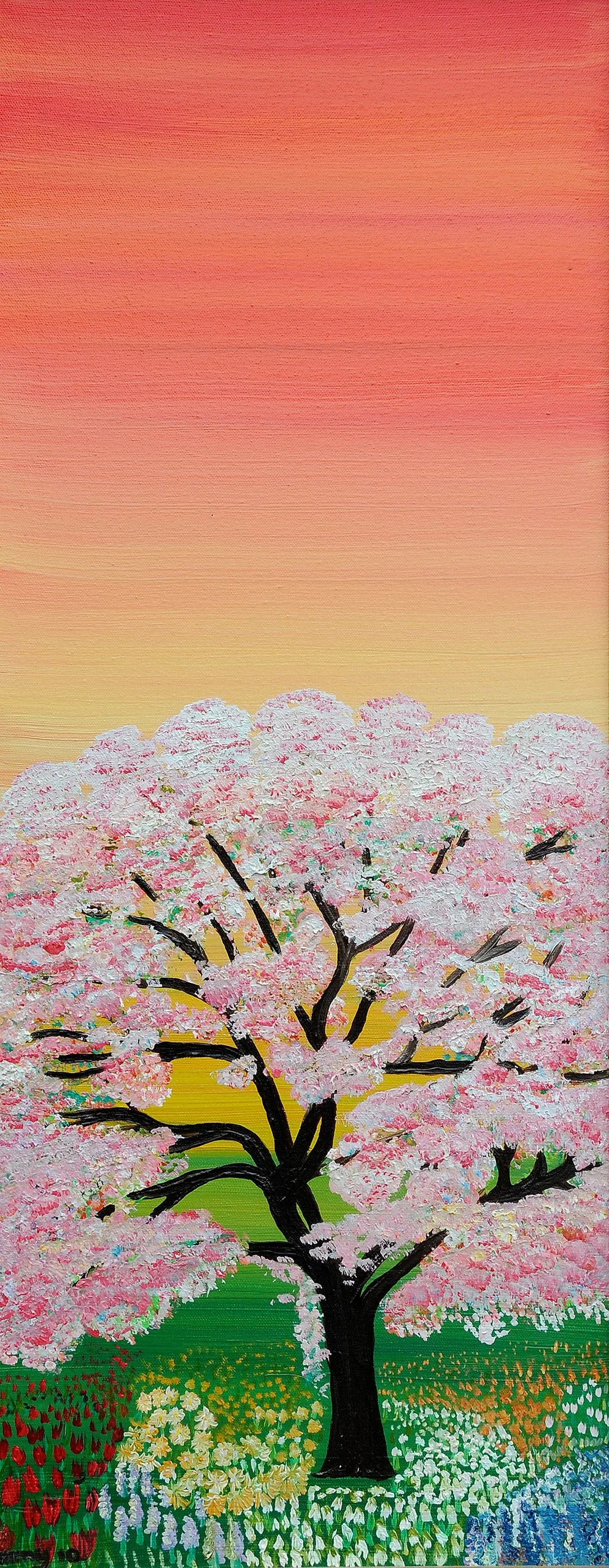 Quadriptych, four seasons (Spring), oil on canvas, 30x100 cm