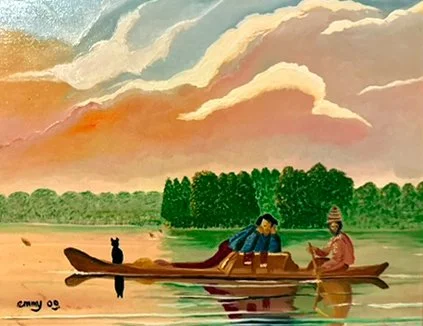 Fur traders, after George Caleb Bingham, oil on canvas, 35x55 cm