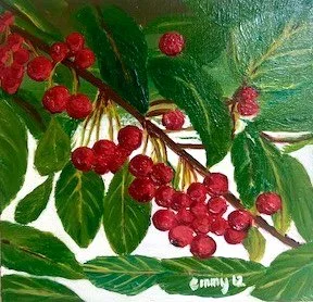 Cherries, Oil on 3D canvas, 30x30 cm